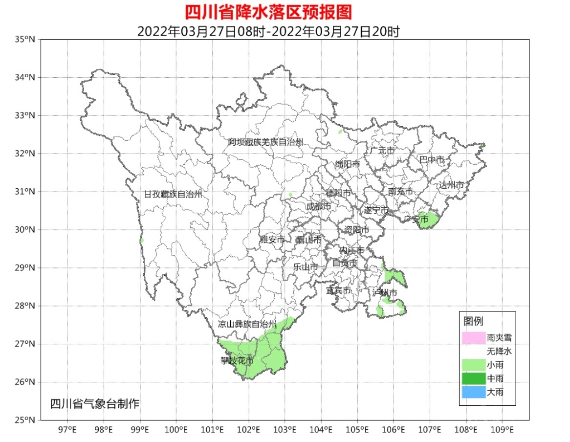 今天晚上:廣元、巴中、綿陽(yáng)、德陽(yáng)4市和成都、達(dá)州、南充3市北部陰天,盆地其余地方小雨,廣安、瀘州2市局部有中雨;阿壩州大部和甘孜州南部有陣雪(雨),甘孜州北部陰天;攀西地區(qū)陰天有小雨,局部地方有中雨。