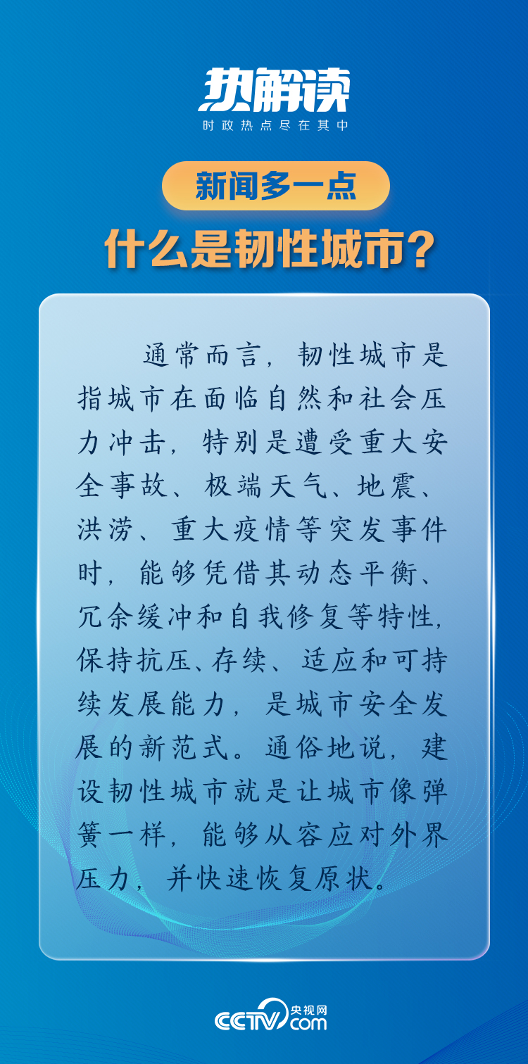 熱解讀近日,習(xí)近平總書(shū)記在上??疾鞎r(shí)首次提出“全面推進(jìn)韌性安全城市建設(shè)”,與此前提出的“建設(shè)韌性城市”相比增加了“安全”兩字,蘊(yùn)含著深刻而富有戰(zhàn)略的意義。