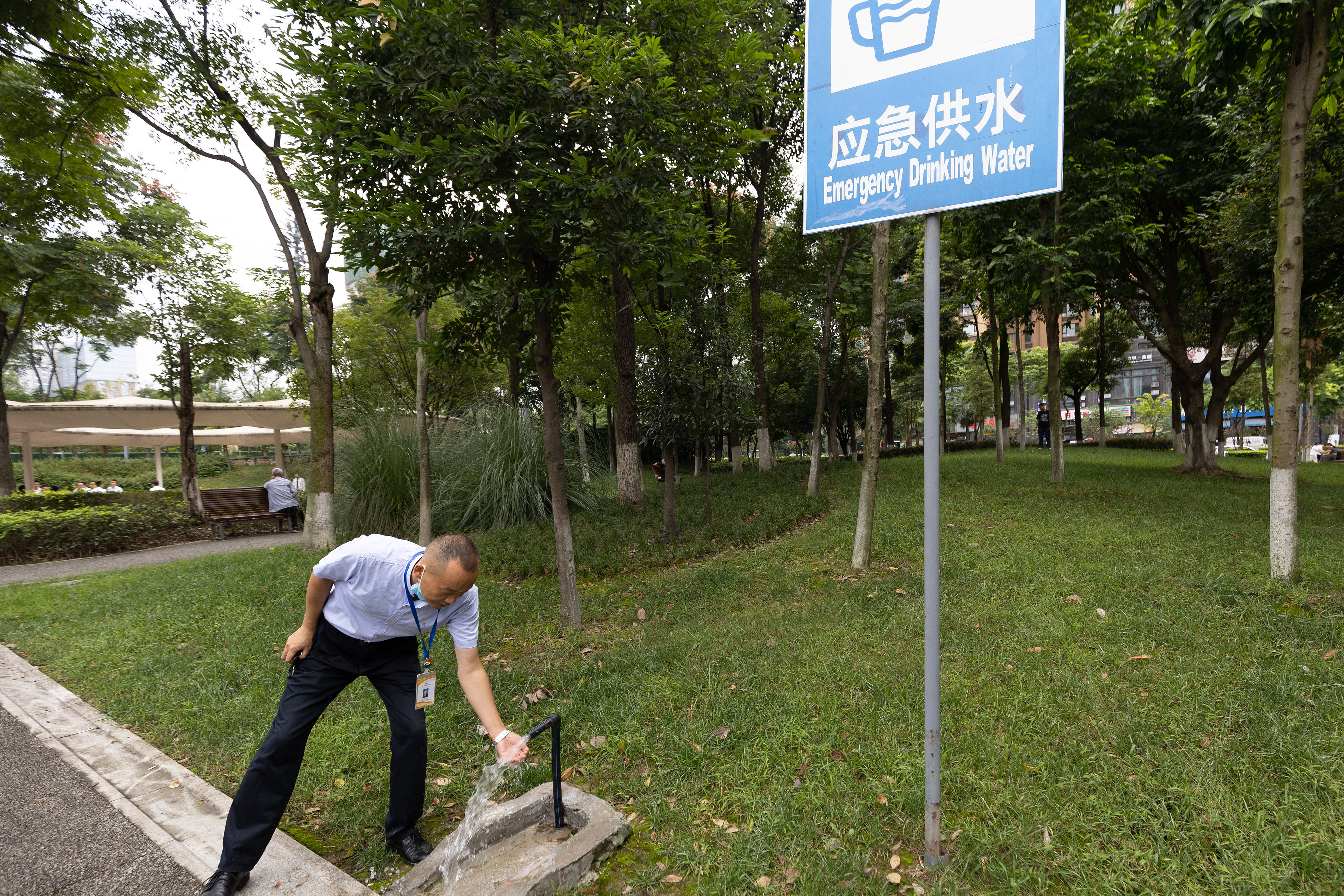 位于成都高新區(qū)天府二街與天府三街之間的大源中央公園,應(yīng)急供水設(shè)施標(biāo)識(shí)醒目。
