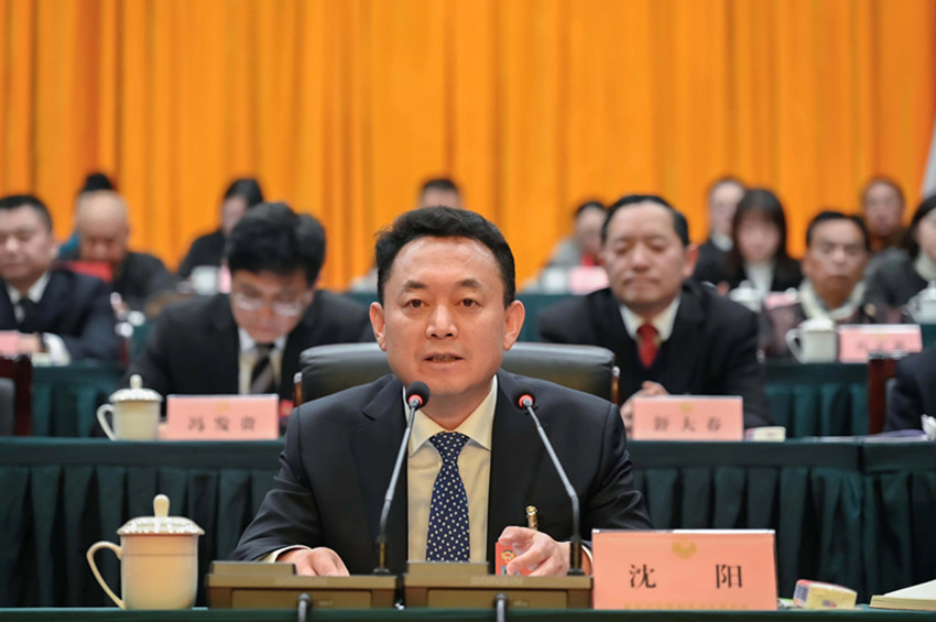 1月29日,甘孜藏族自治州第十三屆人民代表大會第三次會議、政協(xié)甘孜藏族自治州第十四屆委員會第三次會議在康定開幕,州委書記沈陽出席開幕會。圖為沈陽在州政協(xié)十四屆三次會議開幕會上講話。賴強(qiáng) 甲央讓布 攝