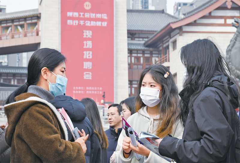 2024年3月6日,由陜西省總工會舉辦的2024年陜西工會“春送崗位”就業(yè)服務(wù)月啟動儀式在西安舉行。與啟動儀式同期舉辦的現(xiàn)場招聘會吸引約200家用人單位參加,提供崗位超過5000個。圖為當(dāng)日求職者在現(xiàn)場招聘會上與企業(yè)工作人員交流。 新華社記者 張博文/攝