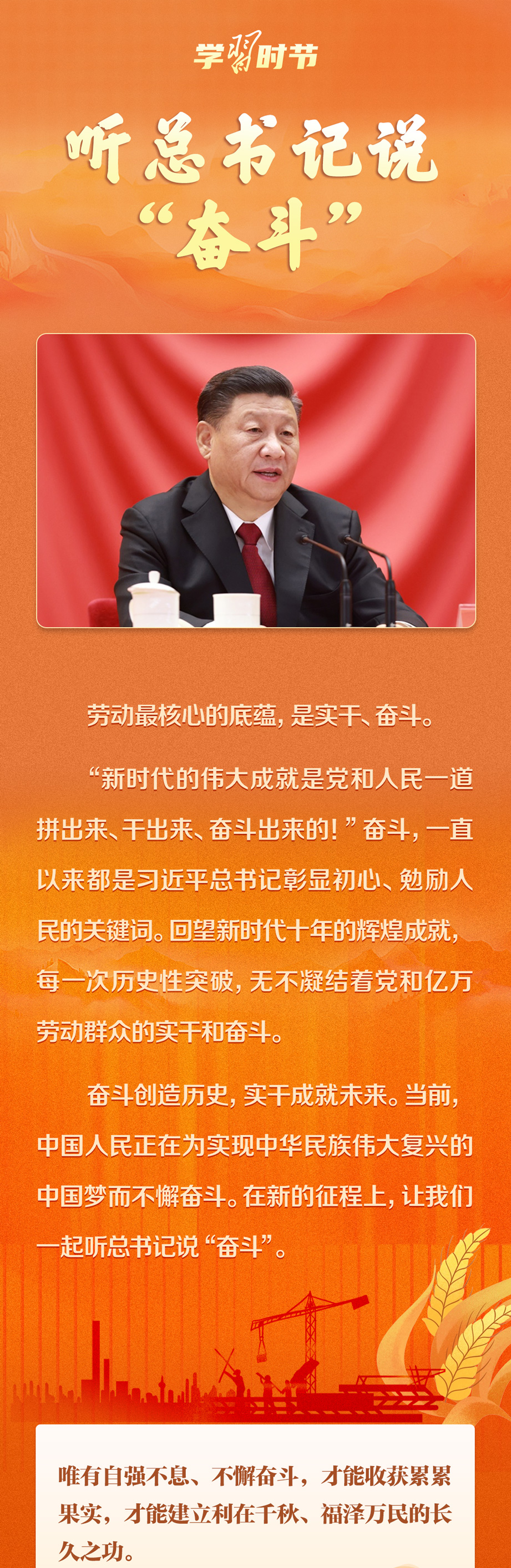 “全國各族人民都要向勞模學(xué)習(xí),以勞模為榜樣,發(fā)揮只爭朝夕的奮斗精神,共同投身實現(xiàn)中華民族偉大復(fù)興的宏偉事業(yè)”。