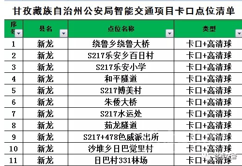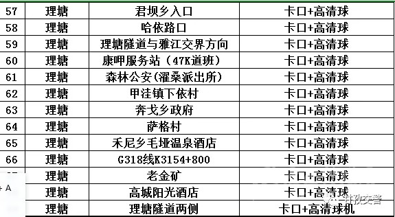 14爐霍轄區(qū)交通違法抓拍點(diǎn)位