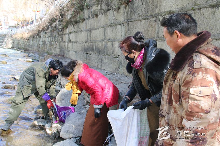 空飲料瓶,方便面盒,廢紙箱,左岸一只,右岸一只。有時(shí)候,他們剛剛清理了,剛轉(zhuǎn)個(gè)身,又有人往河里扔垃圾。“他們以為把垃圾往河里一扔,河水就會(huì)沖走,這是很自私的想法,總以為垃圾只要不在自家門邊就行。”德草的同事格絨曲批抱怨說。