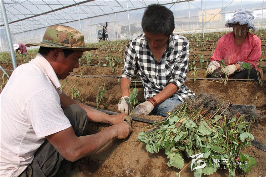 本網(wǎng)訊( 葉強平 文/圖)5月16日,在海拔4000多米的理塘縣濯桑鄉(xiāng)漢戈村圣地農莊大棚里,20多名農場工人正在壟上種植草莓苗。據(jù)悉,去年圣地農莊引進15個草莓品種在大棚里試種3畝,其中5個品種試種成功。今年,農莊擴大種植規(guī)模,22個大棚種植40畝。新蓋的大棚可以開進拖拉機,采用一站式機械化操作,比人工操作效率提高了6倍。