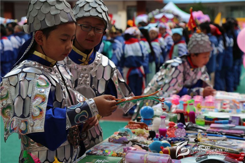 活動現(xiàn)場,各班各出奇招推銷商品,為了吸引顧客,有的班級設(shè)計了具有本班特色的口號、宣傳牌;有的班級學(xué)生還裝扮成“兵馬俑”現(xiàn)場表演吸引顧客;有的在展位前進行舞蹈、歌唱表演;還有的現(xiàn)場流動兜售……吸引了一批又一批顧客前來購買,吆喝聲、討價還價聲一浪高過一浪。