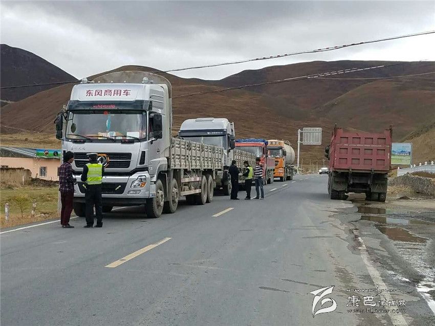 理塘交警檢查車(chē)輛。