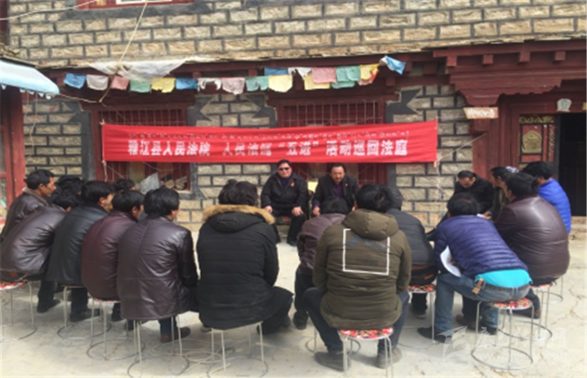 由于布孜村交通落后,給村民的出行帶來了極大的不便,也制約著村里的經(jīng)濟發(fā)展,為了有更好的生活條件,大部分村民選擇搬遷到離村不遠的鄰縣理塘縣生活。在長期的生活接觸中,兩地村民常為一些小事“扯皮”,有了糾紛也不知道如何用法律來解決。為解決布孜村村民法律意識淡薄的問題,雅江縣人民法院專門組建宣講隊深入基層,向已搬遷,但戶籍所在地仍屬雅江縣的布孜村村民分析案情、講解法律知識。