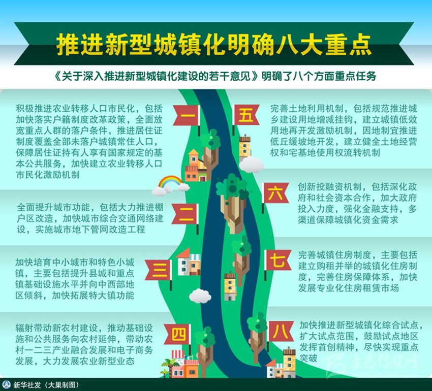 新型城鎮(zhèn)化的核心在于不以犧牲農(nóng)業(yè)和糧食、生態(tài)和環(huán)境為代價(jià),著眼農(nóng)民,涵蓋農(nóng)村,實(shí)現(xiàn)城鄉(xiāng)基礎(chǔ)設(shè)施一體化和公共服務(wù)均等化,促進(jìn)經(jīng)濟(jì)社會(huì)發(fā)展,實(shí)現(xiàn)共同富裕。