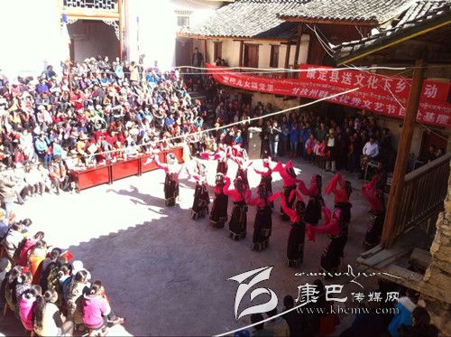 12月2日,康定縣捧塔鄉(xiāng)捧塔寺內(nèi)人頭攢動,熱鬧非凡,由康定縣旅游文化局組織的送文化下鄉(xiāng)惠民演出吸引了周邊的眾多群眾前來觀看。 演出在州歌舞團演員歡快的舞蹈中拉開帷幕。一曲曲耳熟能詳?shù)母枨⒁恢е崆檠笠绲奈璧笧檗r(nóng)牧民群眾送上了一份文化厚禮。演出結(jié)束,意猶未盡的捧塔村民說:“今天一大早我就等在這里,農(nóng)村的文化生活簡單枯燥,好久沒有看到這么精彩豐富的文藝節(jié)目了,它不但豐富了我們的文化生活,還宣傳了黨的惠民政策,這樣的方式比傳統(tǒng)的開會宣傳更能讓大家知曉、熟記各項富農(nóng)惠民政策,也更受大家歡迎,希望這樣的活動以后能多多舉辦。”圖為演出現(xiàn)場。(李瑤 攝影報道)