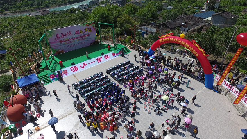 此前的4月27日,濛濛細(xì)雨中,一場“既高規(guī)格又接地氣”的主題晚會更是點亮紅城,耳熟能詳?shù)挠茡P樂曲、龍騰飛揚的歌伴舞、深情款款的詩朗誦,《往事瀘定》《紅色瀘定》《幸福瀘定》三個篇章引得臺下喝彩連連,掌聲雷動,瀘定橋廣場更是被“層層包圍”。在活動現(xiàn)場,蒲瀘兩地旅游餐飲行業(yè)協(xié)會聯(lián)合打造的文創(chuàng)旅游產(chǎn)品——櫻桃小酒正式亮相啟售。
