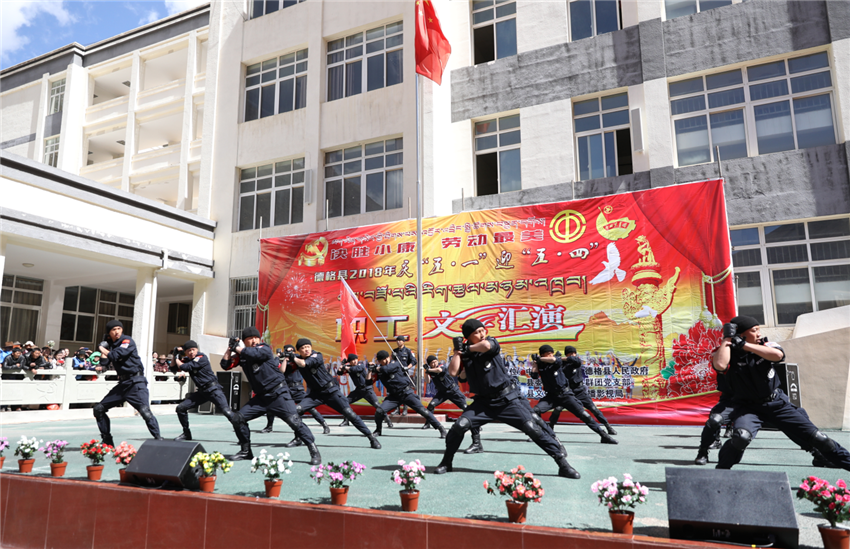 日前,由德格縣委、縣政府主辦,縣委宣傳部、縣群團黨支部、縣文旅廣新局承辦的2018年慶“五一”迎“五四”職工文藝匯演活動在該縣中學舉行,來自全縣各行業(yè)勞模代表、青年代表、各級各部門干部職工、縣中學學生和教職員工2000余人觀看了演出。
