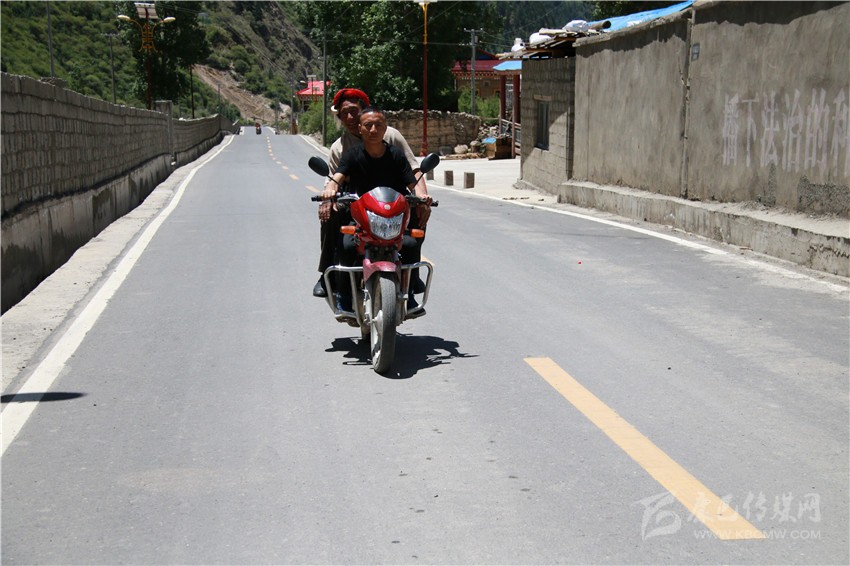 “以前村里沒公路,通鄉(xiāng)的也是一條‘土路’(機(jī)耕道),到縣城要兩個(gè)小時(shí)。因?yàn)槁窙r不好,騎摩托車稍不注意就滑到路邊溝里了?!惫状宕迕襁冉q澤仁回想交通不暢帶來的不便,仍是心有余悸。