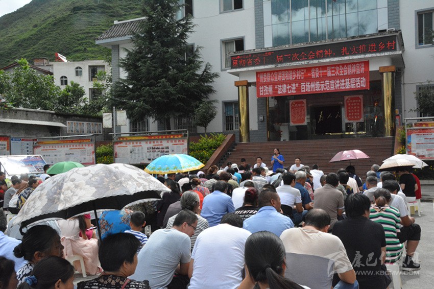 本網(wǎng)訊 7月31日,“州委群眾宣講團(tuán)和諧鄉(xiāng)村行”——省委十一屆三次全會(huì)精神宣講暨“法律七進(jìn)”百場(chǎng)州級(jí)示范宣講進(jìn)基層活動(dòng)在瀘定縣冷磧鎮(zhèn)拉開(kāi)序幕。該鎮(zhèn)壩區(qū)村組群眾代表、村組干部、鎮(zhèn)干部458人聆聽(tīng)宣講。