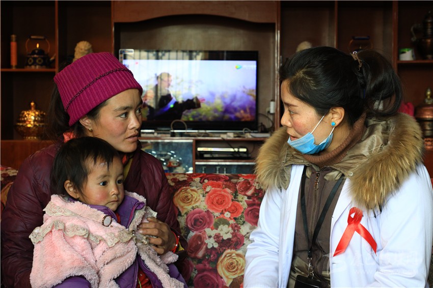 本網(wǎng)訊“艾滋病傳播有三種途徑,要增強健康意識和自律意識……”12月1日是第32個世界艾滋病日,理塘縣村戈鄉(xiāng)村醫(yī)生翁姆頂風(fēng)冒雪深入海拔4200多米的高寒牧區(qū)芒康村,進(jìn)村入戶用藏語向牧民普及艾滋病防治知識。