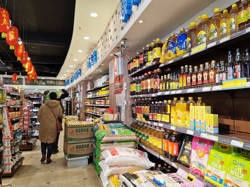 記者走訪多家民貿(mào)公司門店看到,糧油、調(diào)味品等擺滿了多個(gè)貨架,洗手液等也沒有出現(xiàn)斷貨現(xiàn)象,市場井然有序。