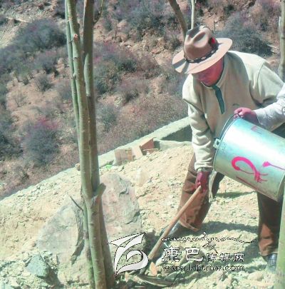 “為大地播綠,植樹造林美化家鄉(xiāng)。”從警一生的丁真曲扎退休前就有用晚年在家鄉(xiāng)植樹綠化,為后代造福的想法。退休賦閑在家,別無所求的丁真曲扎用行動讓自己的想法變成現(xiàn)實(shí)。