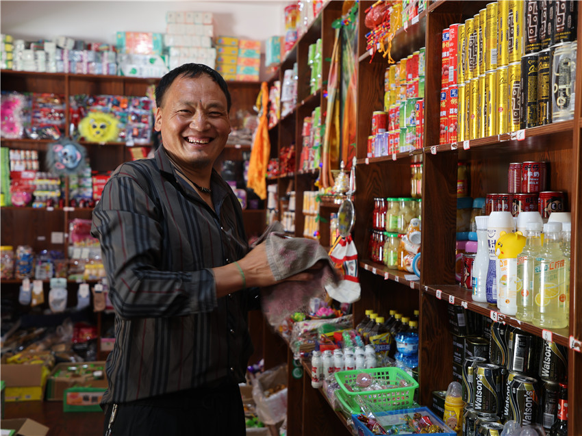 一大早,村民彭措就開(kāi)始忙里忙外的收拾著小超市和茶樓,掃地、拖地、擦拭商品……每一個(gè)環(huán)節(jié)他都做得一絲不茍,他所打理的這個(gè)小超市和茶樓是村里的集體經(jīng)濟(jì)之一,每個(gè)季度都由村民們輪流負(fù)責(zé)日常經(jīng)營(yíng)。這個(gè)不大的村子共有4個(gè)組67戶327人,每個(gè)季度從四個(gè)組中安排三戶村民負(fù)責(zé)村集體經(jīng)濟(jì)的運(yùn)營(yíng)。