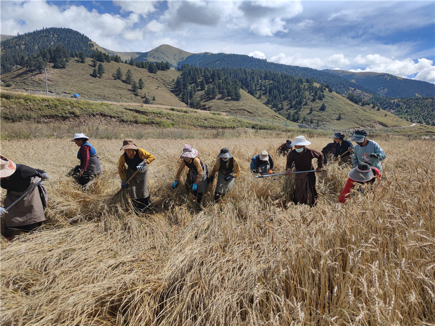 “增德村距鄉(xiāng)衛(wèi)生院差不多有6公里左右,衛(wèi)生院醫(yī)護人員每天到秋收現(xiàn)場對群眾進行核酸檢測,解決了秋收期間群眾兩頭跑的實際問題,現(xiàn)在鄉(xiāng)干部又來幫助我們秋收,今年豐收應該沒有問題。”曾德村黨支部書記格桑甲措說。