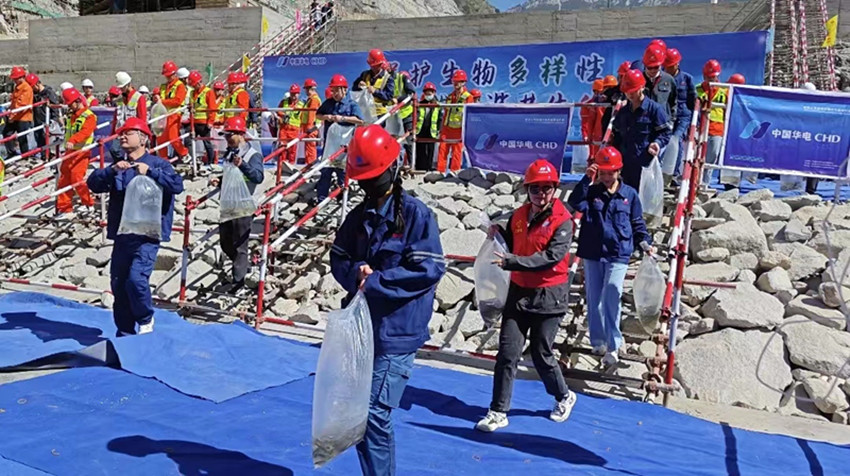 “今年放流的魚苗種類繁多,有四川裂腹魚、短須裂腹魚、長(zhǎng)絲裂腹魚、裸腹葉須魚、軟刺裸裂尻等,其中,裸腹葉須魚為中國(guó)瀕危動(dòng)物紅皮書‘易?!~類,四川裂腹魚為四川省重點(diǎn)保護(hù)魚類。”華電金上葉巴灘分公司負(fù)責(zé)人說,為減少工程建設(shè)對(duì)魚類及水生生物的影響,公司建立了萬里長(zhǎng)江第一級(jí)魚類增殖放流站,是國(guó)內(nèi)首個(gè)截流當(dāng)年開展增殖放流的水電站,自2019年首次舉辦試驗(yàn)性增殖放流活動(dòng)以來,累計(jì)放流106萬尾特有珍稀魚苗。同時(shí)為進(jìn)一步推進(jìn)金沙江魚類種群恢復(fù)、水域生態(tài)環(huán)境的改善,公司還追加了1.7億元的環(huán)保投資,增設(shè)了一臺(tái)生態(tài)備用機(jī)組,提高運(yùn)行期生態(tài)下泄流量的安全度和保證率。聯(lián)合華中農(nóng)業(yè)大學(xué)開展黃石爬鮡、姚氏高原鰍等遠(yuǎn)期放流魚種人工繁殖技術(shù)研究,采取分層取水技術(shù),有效改善水庫(kù)下泄水溫,為魚類繁殖生存提供適宜條件。