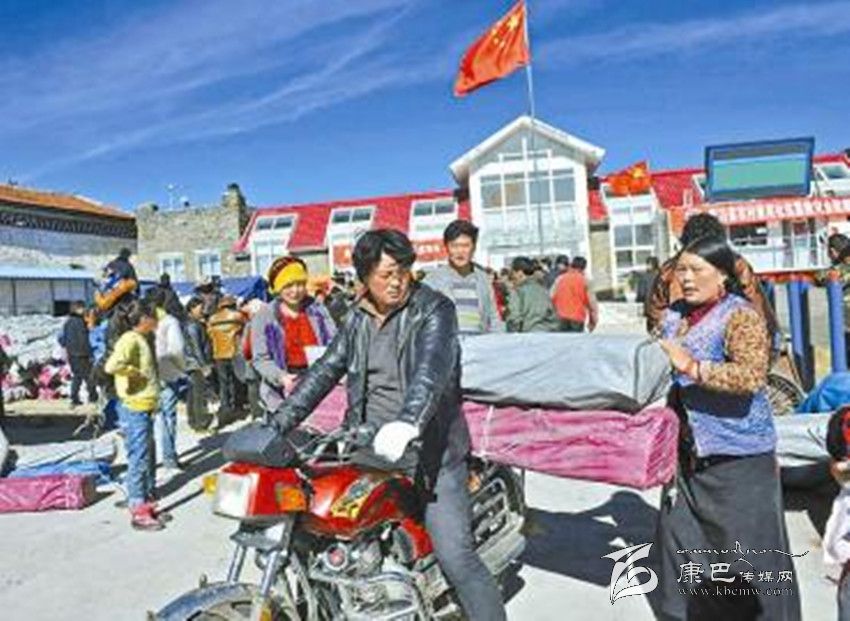 11月26日,康定縣塔公鄉(xiāng)江巴村受災村民將在村委會領(lǐng)到的救災物資拉回家。 吳傳明 攝