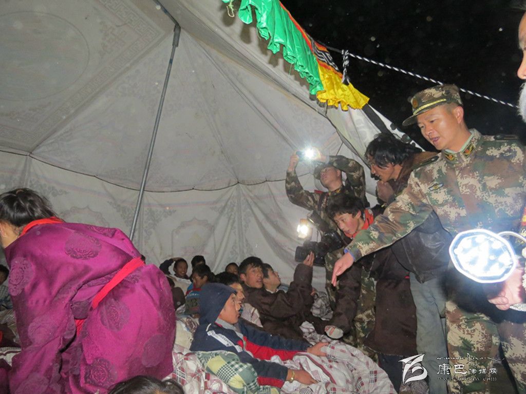 凌晨1時,在江巴村,60名官兵挨家挨戶搜救轉(zhuǎn)移群眾,連夜搭建救災(zāi)帳篷。“同志,我的小女兒拉姆找不著了,可能埋在房子里了……”澤仁阿巴急匆匆地拉著武警戰(zhàn)士的手求援,“你家在哪里?快帶我們?nèi)ィ?rdquo;未等四十歲的澤仁阿巴說完,官兵們奔向不遠(yuǎn)處的一堆倒塌的房屋。考慮到有人埋在下面,官兵們不敢用鎬刨用鍬鏟,在另一面墻上石片不停掉落的情況下,仍然紛紛撲下身子扒拉土石結(jié)構(gòu)的殘?jiān)珨啾冢罱K在兩個木箱中間找到了已哭成淚人的小拉姆,所幸6歲的拉姆安然無恙。