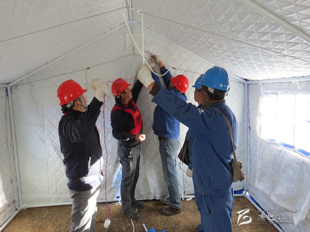 奪拉二村有4個變壓器臺區(qū),其中2個臺區(qū)為人員較多的木雅祖慶學(xué)校,地震使學(xué)校住宿樓變?yōu)槲7浚=?000名學(xué)生轉(zhuǎn)移至學(xué)??盏厣系陌仓命c。為了讓安置點內(nèi)的受災(zāi)師生和應(yīng)急指揮中心盡快用上電,黨員突擊搶險小分隊不僅要在安置點迅速安裝應(yīng)急照明設(shè)施,同時還要從圍墻和學(xué)校食堂的樓頂上重新布放近3段2公里長的臨時電源線。學(xué)校圍墻因地震而搖搖欲墜,稍微用點力,墻、磚塊或水泥就會掉下來,面臨這一難題,公司黨總支沉著應(yīng)對,迅速組織塔公供電所與新都橋供電所的黨員干部趕往震中,同時安排其余供電所的黨員干部迅速增援。先期到達的救援人員在余震不斷發(fā)生的情況下,對受損供電設(shè)備及線路進行了緊急處理;在后期人員趕到后,公司黨總支迅速研究制定工作方案,科學(xué)分工:第一組黨員突擊搶險隊負(fù)責(zé)隱患排查,第二組黨員突擊搶險隊負(fù)責(zé)電線布放,第三組黨員突擊搶險隊負(fù)責(zé)救災(zāi)帳篷的照明安裝。在三個小組隊員的共同努力下,用近三個小時的時間就解決了應(yīng)急指揮中心、醫(yī)療隊和臨時安置點的照明安裝這一難題。
