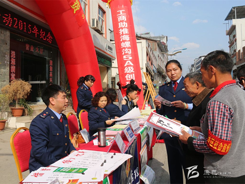 本網(wǎng)訊(州工商局 文/圖)為貫徹州政府5A級景區(qū)創(chuàng)建工作推進(jìn)會議精神,州工商局積極謀劃、主動作為,以“3·15國際消費者權(quán)益日”紀(jì)念活動為契機,以走進(jìn)海螺溝景區(qū)、貼近民營經(jīng)濟為載體,全力助推海螺溝5A景區(qū)創(chuàng)建工作。