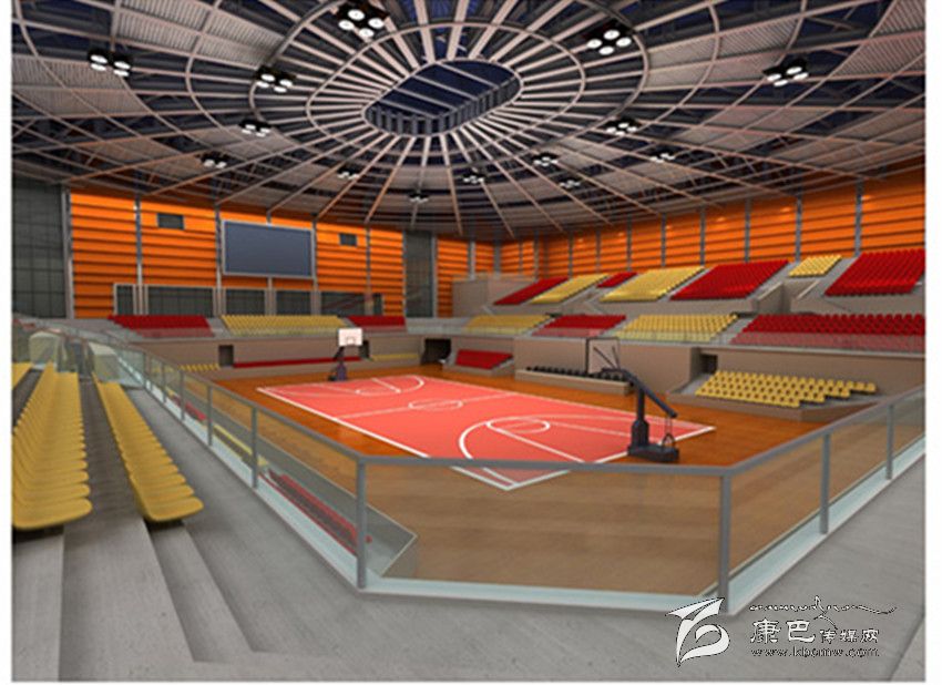 該館負(fù)一層為一個(gè)238車位的地下停車庫和若干設(shè)備用房。一層核心區(qū)是一個(gè)可進(jìn)行籃球、排球、手球、羽毛球、乒乓球、體操等比賽的標(biāo)準(zhǔn)化綜合比賽場;周邊設(shè)休息室、會議室、消音室、醫(yī)療室、分線室、檢錄室、洗浴室、準(zhǔn)備室、轉(zhuǎn)播室等附屬功能用房。利用該轉(zhuǎn)播室可以實(shí)現(xiàn)網(wǎng)絡(luò)、電視對場內(nèi)活動的實(shí)時(shí)轉(zhuǎn)播。二層主要有醫(yī)務(wù)室和休息室。三層是控制中心機(jī)房、工作室。聲光控制室、計(jì)時(shí)計(jì)分屏室在四層。體育場內(nèi)共設(shè)10個(gè)無障礙席位在內(nèi)的2998個(gè)固定座席和730活動座位,分布在1至4層。