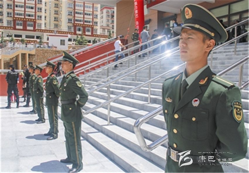 8月10日下午,記者來(lái)到康定市新區(qū)民族體育館,在烈日下,公安干警和武警官兵筆挺站立,守護(hù)著演職人員和觀眾的安全。