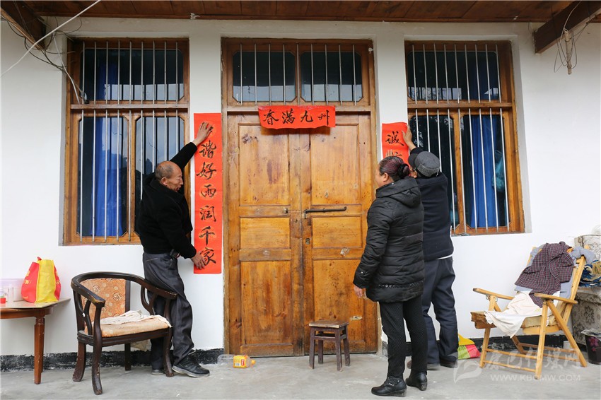 本網(wǎng)訊(賴天 文/圖)22日中午,老陳吃完午飯,就急急忙忙將早已準(zhǔn)備好的春聯(lián)拿了出來(lái),用糨糊刷在門框上,然后小心地開始貼春聯(lián)?!坝疫吥锹?lián)往下點(diǎn),有點(diǎn)偏高?!崩详惖钠拮釉陂T前面指揮著,他們的小孫子也興致勃勃地跑來(lái)給爺爺幫忙。