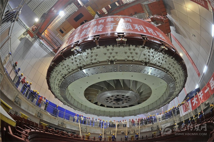 該轉(zhuǎn)子外徑尺寸12.5米、高3.6米、總重量1240噸,歷經(jīng)145天組裝完成,經(jīng)檢測該機(jī)組轉(zhuǎn)子圓度、磁軛波浪度等質(zhì)量指標(biāo)均超過廠標(biāo)及國優(yōu)標(biāo)準(zhǔn),優(yōu)于集團(tuán)公司精品工程要求。圖為組裝現(xiàn)場。