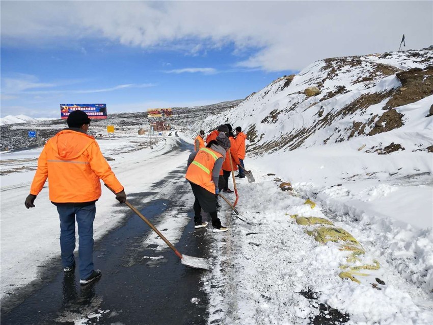 州局領(lǐng)導(dǎo)第一時(shí)間深入丹巴、道孚、新都橋、瀘定分局所轄路段進(jìn)行了巡查和再安排再部署,成立了4個(gè)督導(dǎo)組,由班子成員帶隊(duì)分片區(qū)、分路段包干負(fù)責(zé),分赴降雪最嚴(yán)重的瀘定至折多山路段指揮除雪除冰工作。瀘定、新都橋等分局也組織機(jī)關(guān)干部組成應(yīng)急搶險(xiǎn)小分隊(duì),全員上路,加強(qiáng)道路巡查頻次,對(duì)暗冰、彎道路段的積雪做到隨降隨清,及時(shí)增設(shè)警示標(biāo)志和清理沿線垃圾,積極配合公安交警疏導(dǎo)交通,救助被困車輛。通過門戶網(wǎng)站和微信公眾號(hào)向社會(huì)及時(shí)發(fā)布路況信息、高原冰雪天氣安全行車常識(shí)。