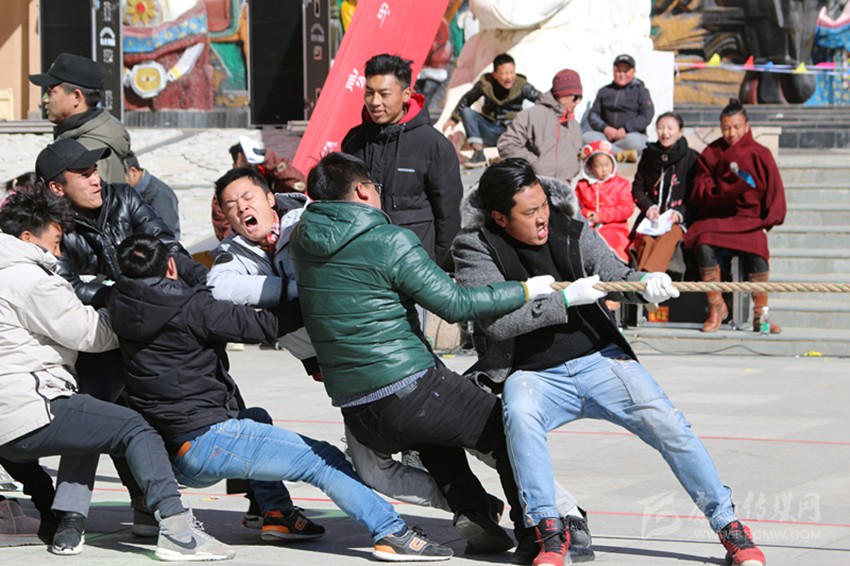 趣味比賽將干部職工和高城鎮(zhèn)農(nóng)牧民群眾分成若干個(gè)小組進(jìn)行比賽,“翻山越嶺 ”游戲,男生普遍輕松應(yīng)對,女生由于沒有助跑,一直栽在“山坡上”翻不過去,引得現(xiàn)場觀眾大笑,最后在現(xiàn)場觀眾的齊聲加油下終于翻過。跳繩、袋鼠跳,參賽選手較勁比拼?!坝赂艺摺庇螒颍M員需先轉(zhuǎn)10個(gè)呼啦圈、踢毽10下、吹爆一個(gè)氣球、跳繩10下、喝完一瓶330毫升的礦泉水進(jìn)行接力,現(xiàn)場氣氛熱烈,觀眾的加油吶喊聲此起彼伏。“坦克大戰(zhàn)”游戲考驗(yàn)了大家協(xié)調(diào)配合能力,把觀眾的心都提到嗓子眼。最引人注目的拔河比賽開始了,每個(gè)隊(duì)都帶著勢在必得的勇氣上場,結(jié)果年輕小伙們卻輸給了高城鎮(zhèn)農(nóng)牧民代表隊(duì)。