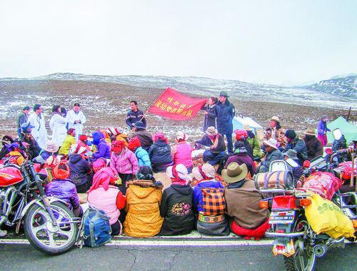 海拔4500米的蟲草山上,流動黨員服務(wù)隊紅旗飄揚。
