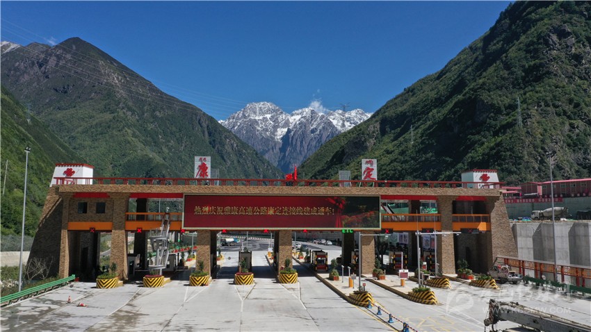 “木雅古碉”建筑矗立兩旁、六出四進通道一字排開;巨大熒幕流光溢彩,連接通道窗明幾凈;從無人機航拍畫面可以看到,一面巨大的五星紅旗,已在站頂平層鋪展開來……9月28日上午8時整,一輛客車從升航特大橋駛來,撞破紅綢駛向康定城,旁邊車道上等待多時的車輛依次行進,雅康高速公路上規(guī)模最大的收費站——康定收費站正式啟用,康定連接線和入城大道通車?!翱刀ㄟB接線建成后將極大提高雅康高速公路進入康定城區(qū)車輛通行效率、有效改善康定入城交通的擁堵狀況。”藏區(qū)高速公路公司相關(guān)負責(zé)人如是說。