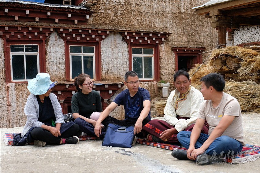 巴塘縣紀委監(jiān)委干部在訪村入戶過程中與群眾席地而談。