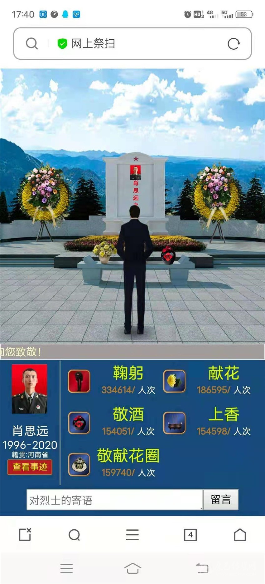 同時(shí),該行轄內(nèi)廣泛組織開(kāi)展告慰先烈?守護(hù)有我”線上文明祭掃活動(dòng),積極動(dòng)員各縣(市)支行黨員干部登錄中華英烈網(wǎng)。