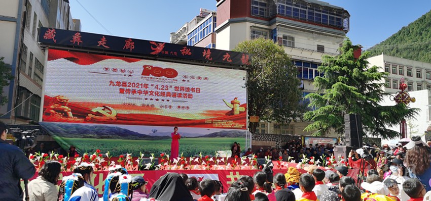 本網(wǎng)訊 用聲音追憶崢嶸歲月,用詩詞迎接世界讀書日。4月23日上午,在康定市民族小學(xué)舉辦的2021年甘孜州全民閱讀活動(dòng)暨康定市全民閱讀活動(dòng)啟動(dòng)儀式上,康定市7所學(xué)校緊扣慶祝中國共產(chǎn)黨成立100周年主線,以弘揚(yáng)中華民族傳統(tǒng)文化、紅色文化為主題,為大家奉上一桌各具特色的文化盛宴。