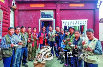 創(chuàng)作采風期間,北部高原帶著泥土芬芳的生活深深地陶醉了隊員們,不知不覺,大家都成了早起晚歸,不辭艱辛的攝影人。每天早上4、5點起床是常事,夜幕四圍才吃晚飯更是習慣。團結(jié)、協(xié)作、樂于助人成為一種自覺的風氣:60多歲的趙文光老師退休前曾任過康定縣宗教局和縣政法委領(lǐng)導(dǎo),他成為采風隊最好的藏語翻譯;身板硬朗的他還被稱為“能攆獐子”的人。隊員辛沂外出拍照的時間最多,走的地方也很多,外出經(jīng)驗豐富,他精心準備的常用藥品熱心幫助了許多人。唐保安老師工作時常到農(nóng)村牧區(qū)調(diào)研,日積月累的基層生活知識成了采風中不可多得的向?qū)?。被譽為攝影后期制作高手的胡庭輝每天義務(wù)為隊友考貝蓄存卡,講解攝影知識。王明陽、游建中更是身體力行地作表率,吃苦在前,當向?qū)Фㄅ臄z點,心甘情愿地為隊友們服務(wù)。在宗塔草原民居接待站,高齡的代奇元老師和游建中不顧外出拍攝的勞累,主動熱心地親自下廚,為隊友們做出可口的飯菜。13日上午,藍色中巴在海拔3600公尺的老折山爆胎,州攝協(xié)主席,也是這次帶隊的郭昌平身先士卒,帶領(lǐng)會修車的胡庭輝、黃元康等不顧高山缺氧,積極幫司機換輪胎。離開宗塔草原最后一晚,原本安排此行唯一一次早上8點起床,讓隊員們好好休息一個早上,沒想到不到早上6點,全體隊員無一遺漏地都起床追光逐影拍照去了。來自四川民族學(xué)院的黃元康外出拍照返回,還忙著幫中巴車李師傅擦洗車廂。李師傅在創(chuàng)作采風期間也深受感染,這天也沒在床上呆住。他對筆者說:這段時間和你們早晚相處,才知道攝影創(chuàng)作有多辛苦,你們的吃苦耐勞精神不得不讓人佩服。我今早上也睡不著呀,起來擦洗車廂,也想讓你們路途中乘坐得舒服一點……