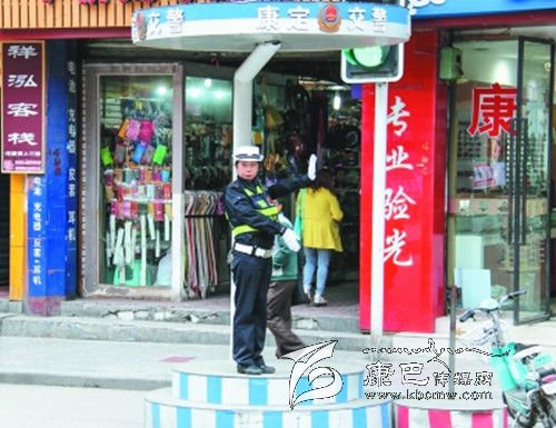 “川G*****,趕快開走,不要在公交站牌前???rdquo;,“那位騎摩托車的,速度慢一點,慢一點。”八點鐘,曹韓康的大喇叭聲準時在群藝館十字路口響起。