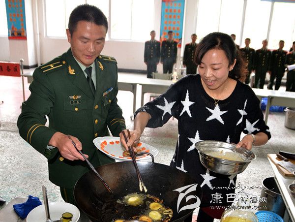 在當天的比賽中,官兵和家屬們各顯神通,大展身手。干煸蝦、酸菜魚、籽姜牛肉、拔絲紅薯、剁椒魚頭、苦瓜煎蛋餅……一道道色香味俱全的川、湘、魯、浙家常菜,讓官兵們目不暇接、垂涎欲滴,偏僻的警營飄來陣陣菜香。