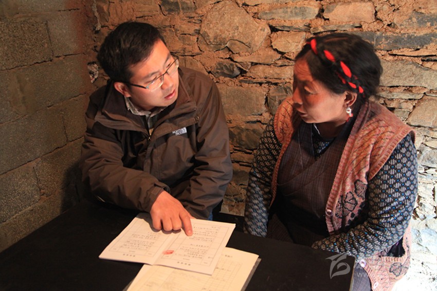 雅江縣灣地溝村第一書記與貧困村民交流。