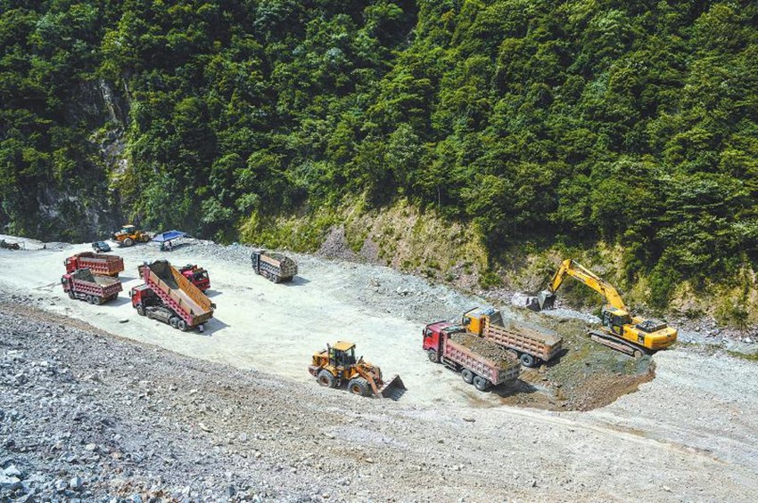 溯流而上,沿國(guó)道318線往西,在建的雅康高速不時(shí)映入眼簾,幾個(gè)巨型的渣土堆放體或覆蓋薄膜或已植草興綠,不時(shí)有裝載渣土的貨車迎面駛過。