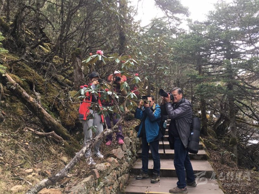 一路上,攝影家們從多角度、全方位用鏡頭聚焦木格措美景,很多精美的作品在贊嘆和感懷中應(yīng)運而生。木格措一年四季景色各異,尤其以景區(qū)內(nèi)滿山遍野盛開著紅色、粉色和白色的杜鵑花最為艷麗,七色海的美景令人陶醉,這是天然繪就的一幅色彩斑斕的油畫。