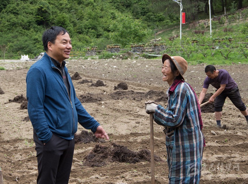 圖為陳永強與村民交流種植經(jīng)驗。