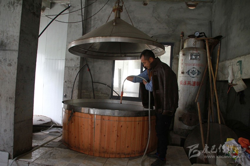 張光君在清洗釀酒器具。